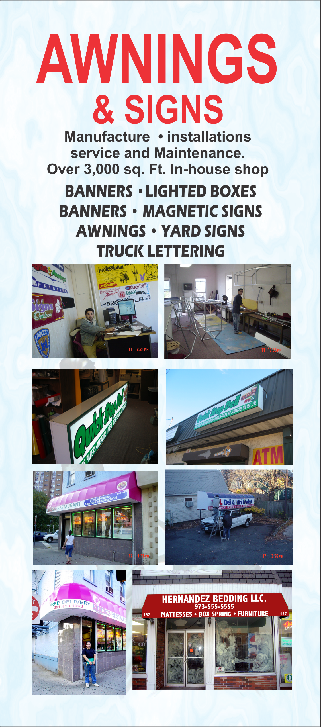 HOME | AWNINGS | BANNERS | MAGNETIC SIGNS | TRUCK LETTERING | YARD SIGNS